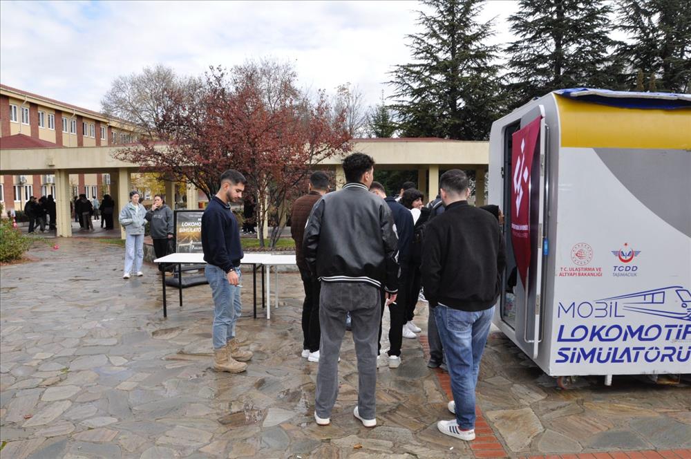 24–25 Kasım 2025 tarihlerinde Ulaştırma Meslek Yüksekokulumuzda gerçekleştirilen etkinlik kapsamında, TCDD Taşımacılık A.Ş. Tren Lokomotif Simülatörü öğrencilerimizin incelemesine ve deneyimine sunuldu. İki gün süren etkinlik boyunca öğrencilerimiz, demiryolu taşımacılığına dair temel süreçleri gözlemleme ve sektörde kullanılan teknolojiler hakkında bilgi edinme fırsatı elde etti.