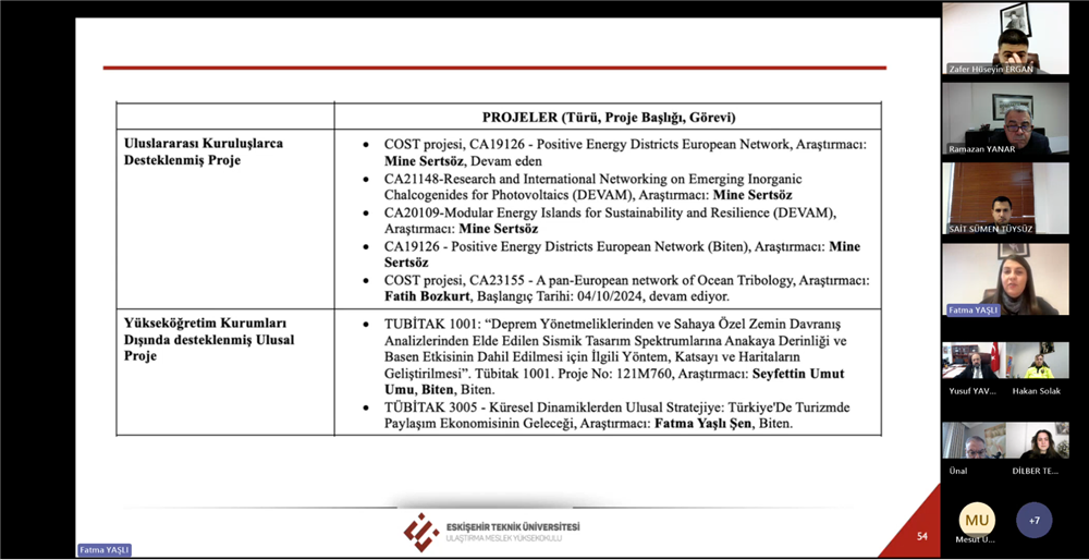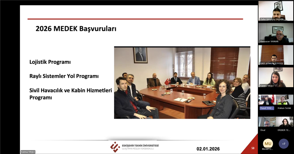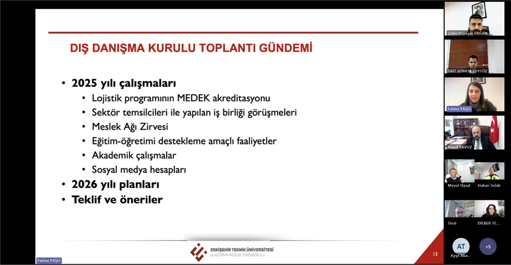 Ulaştırma Meslek Yüksekokulu Dış Danışma Kurulu Toplantısı, 14 Ocak 2026 Çarşamba günü çevrim içi olarak gerçekleştirildi.